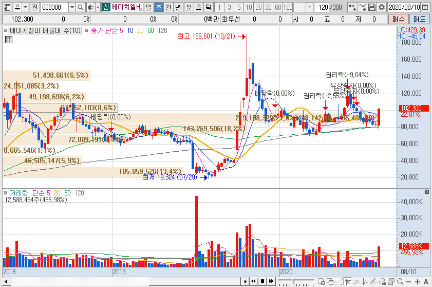 2019년 8월에 2달 사이 9배에 가까운 상승률을 기록하며, 시가 총액이 10조원을 돌파했었습니다.