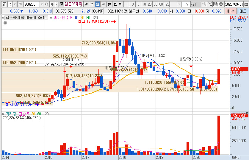 그래서 텔콘RF제약 주가를 보기전에 케이피엠테크 주가를 먼저 봐야합니다.