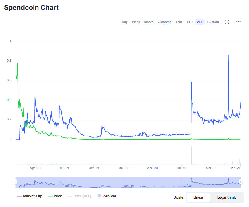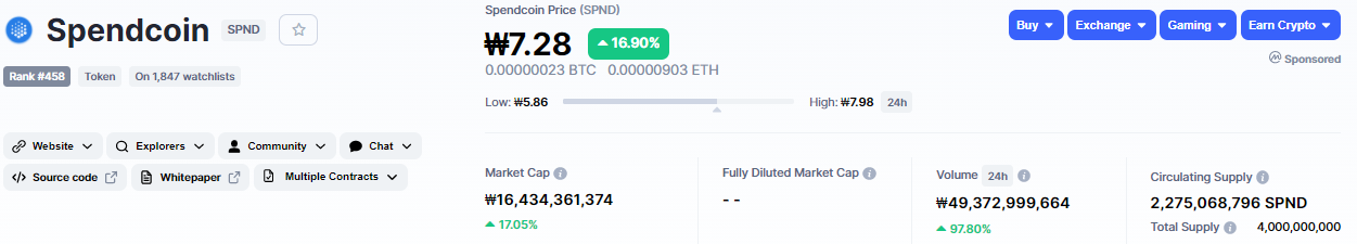 스펜드코인의 시가총액 순위는 459위로 높은 편은 아닙니다.