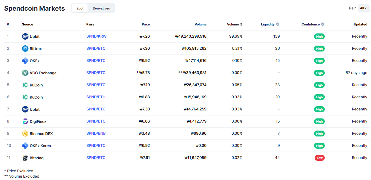 스펜드코인이 상장된 거래소는 총 8개입니다.