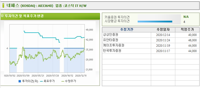 최저가 4만원에서 최고가 4.6만원까지를 네패스의 목표주가로 제시했습니다.