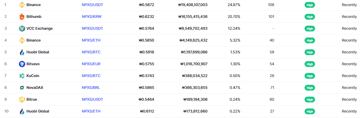 바이낸스, 빗썸, 후오비 등 메이저 급 거래소에서 펀디엑스의 거래량의 많은 부분이 거래되고 있습니다.