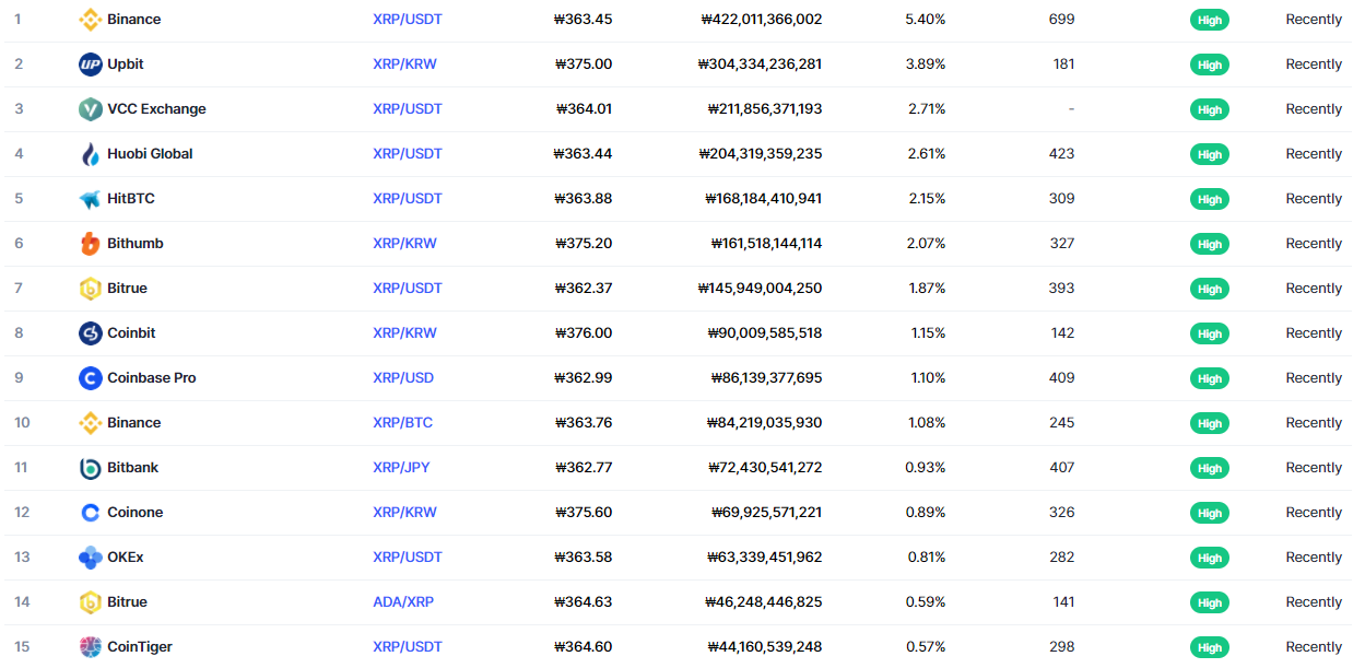 리플 거래소 현황