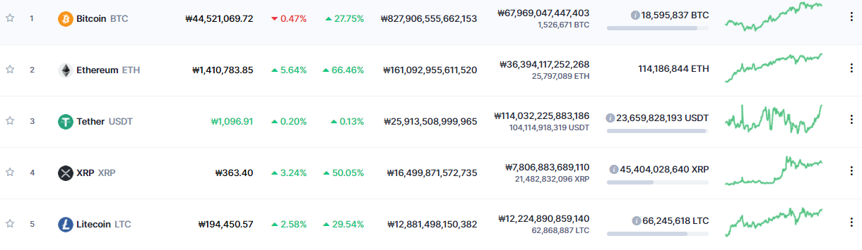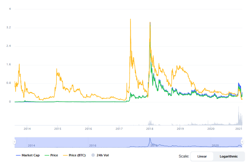 2017년 겨울 대 상승장에서는 한때 이더리움을 추월하며, 2위까지 오른 적이 있으나, 최근 SEC 소송으로 인한 시세 하락으로 라이트코인에 밀리기도 했습니다.