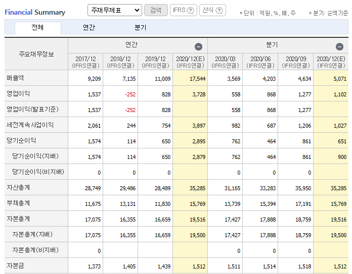 2020년 실적은 전년 대비 4배 이상의 순이익을 낼 것으로 예상됩니다.