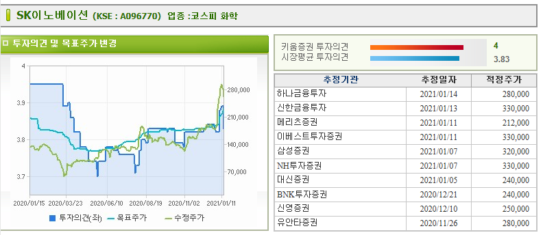 SK이노베이션의 목표주가를 제시한 증권사 및 기관은 아래와 같습니다.