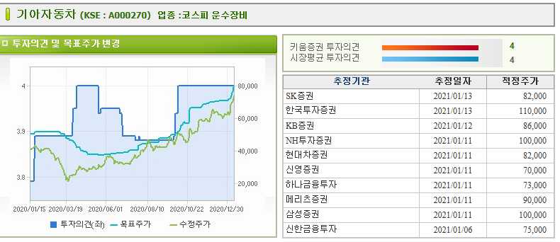 기아차의 목표주가를 제시한 증권사 및 기관은 아래와 같습니다.