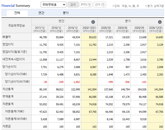 NAVER의 실적은 위의 표와 같은데, 2020년 실적 전망은 2019년에 비해서 상승할 것으로 예상됩니다.