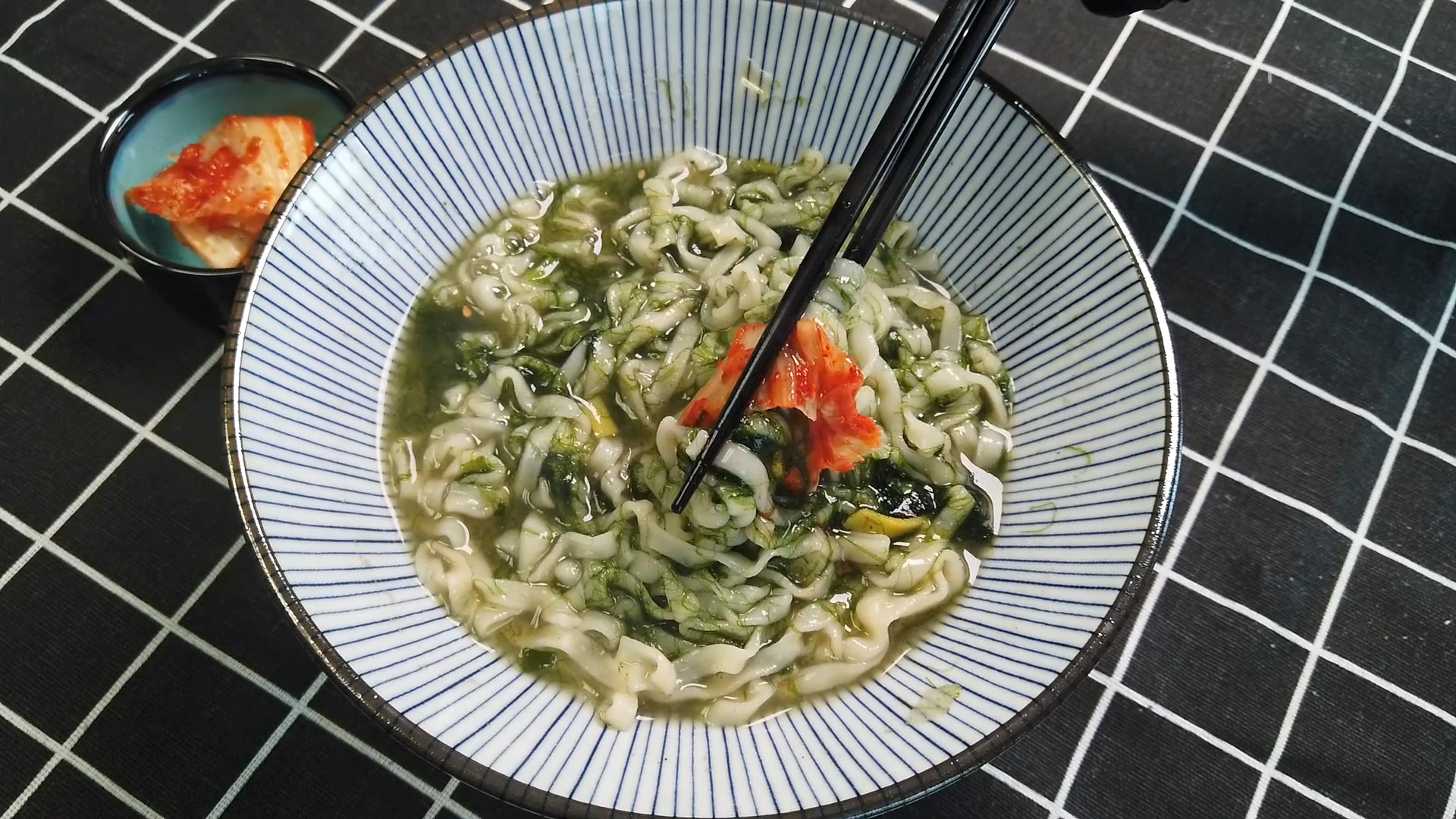 매생이를 슬슬 풀어주면 매생이 라면 완성