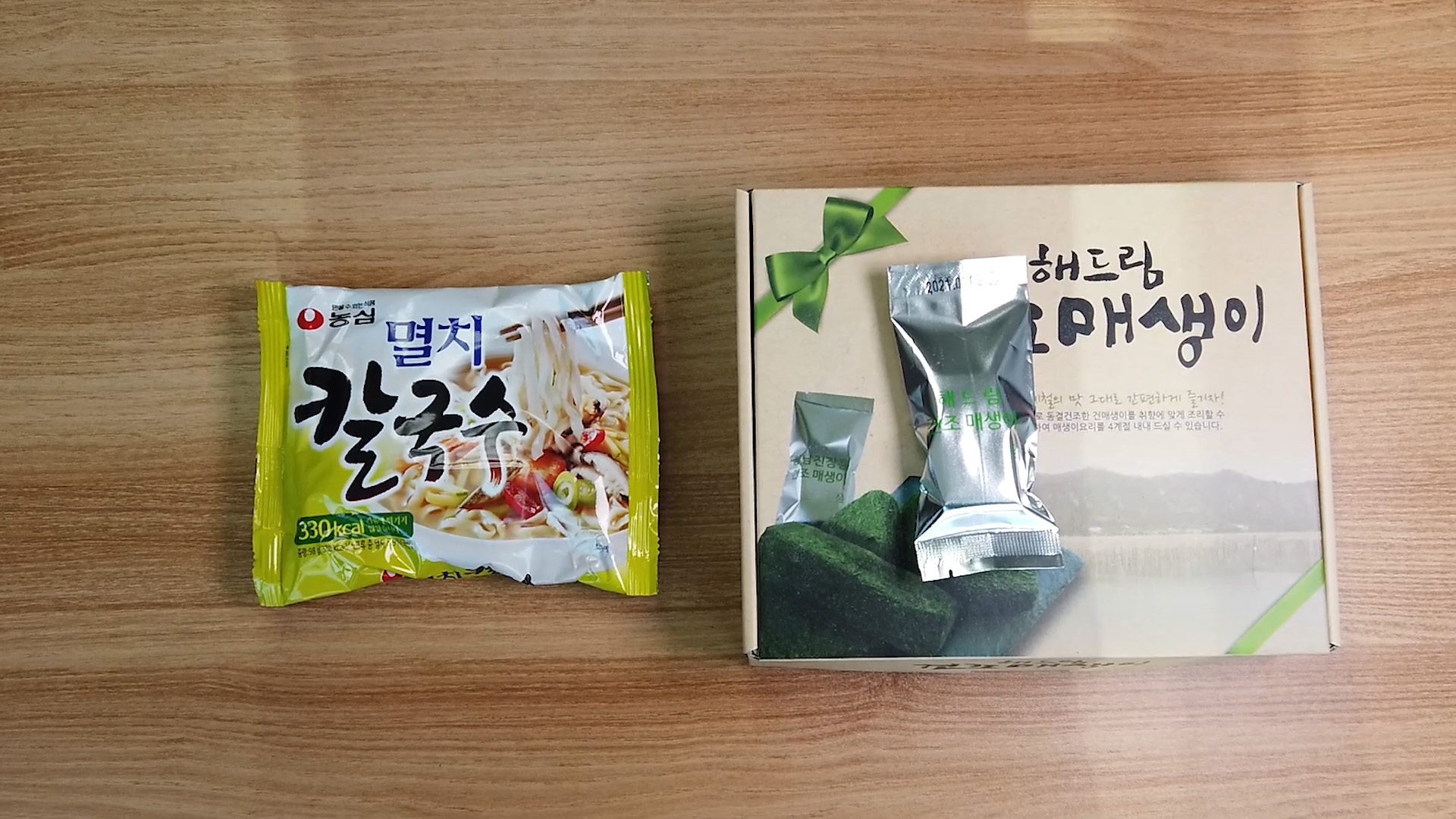 사리곰탕과 멸치칼국수를 사왔는데, 아무래도 같은 해물 계열인 멸치칼국수가 더 어울리겠죠?
