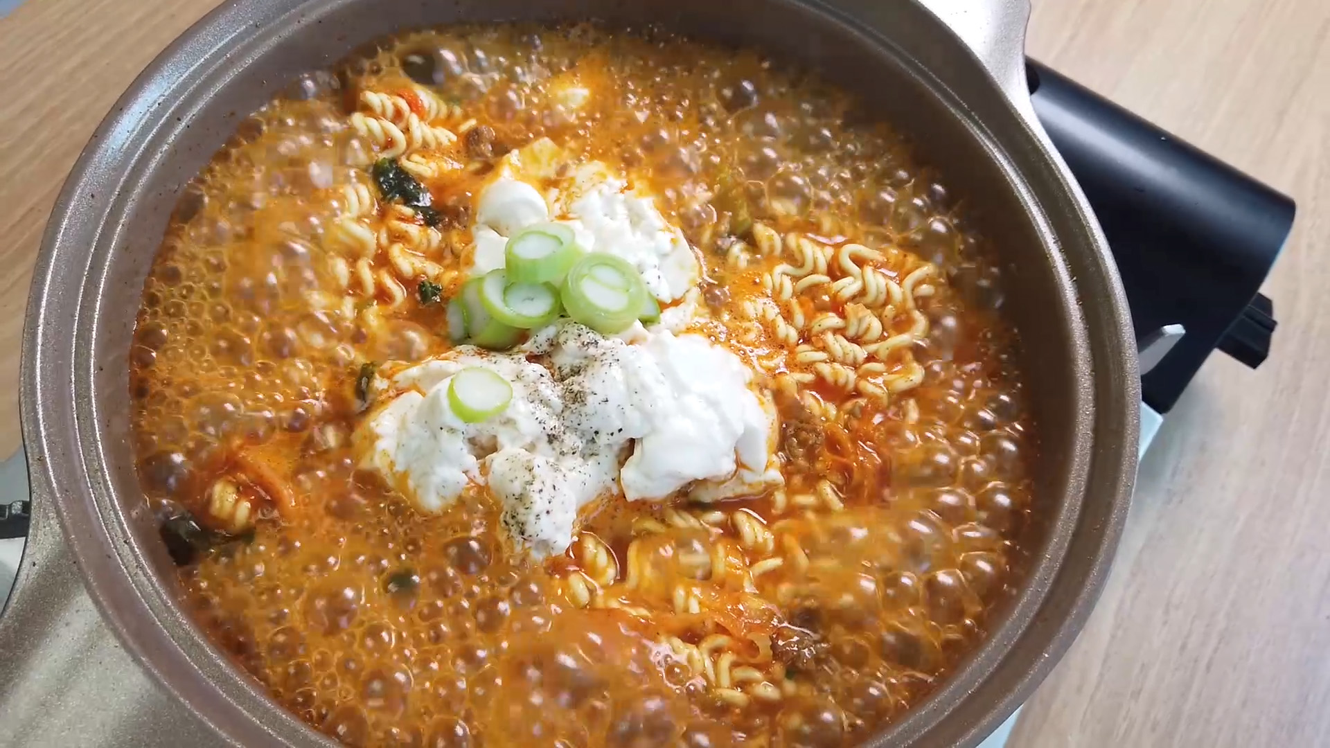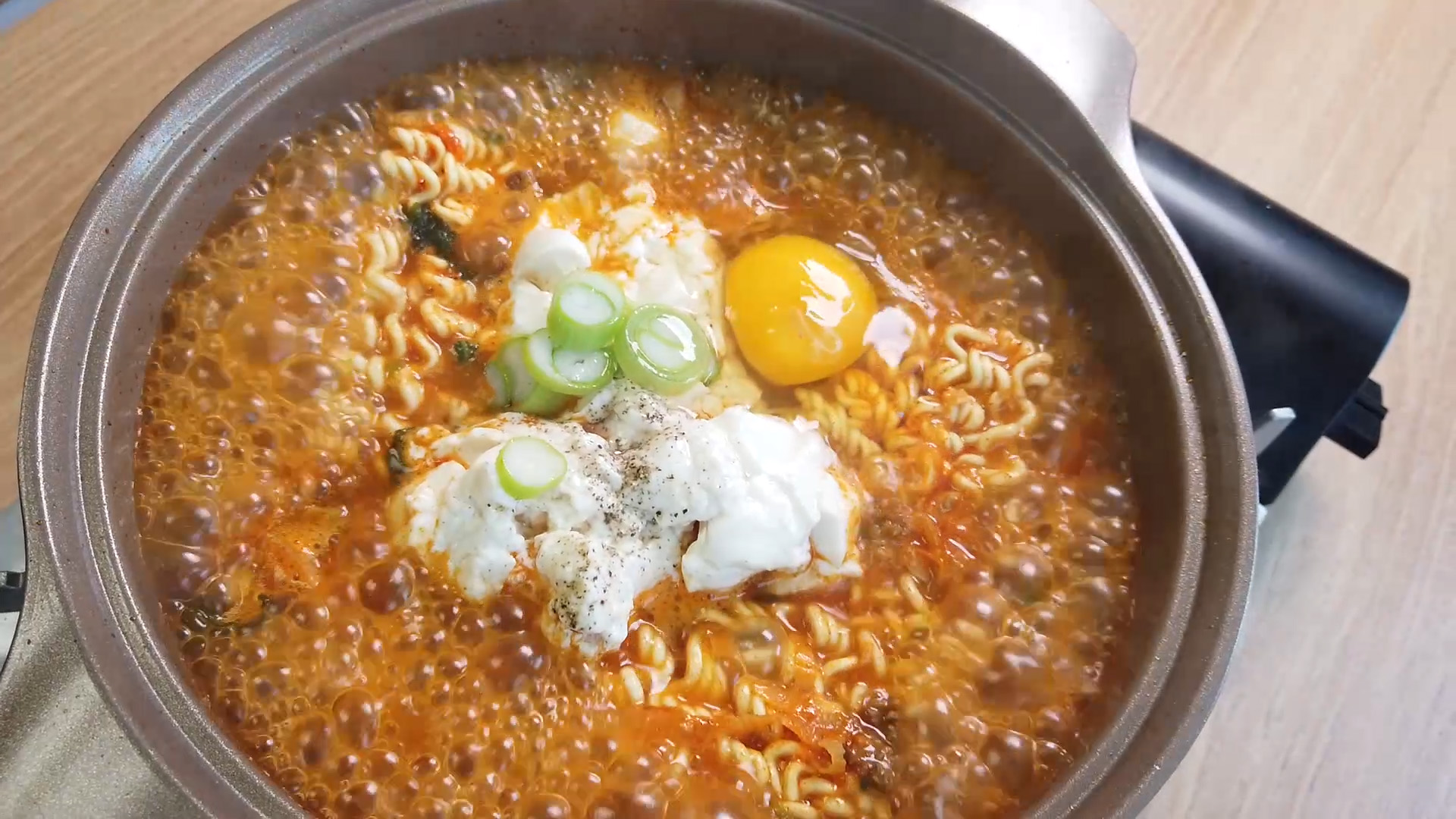 마지막에 계란을 넣어줘야 좀 더 순두부스러운 라면이 완성됩니다