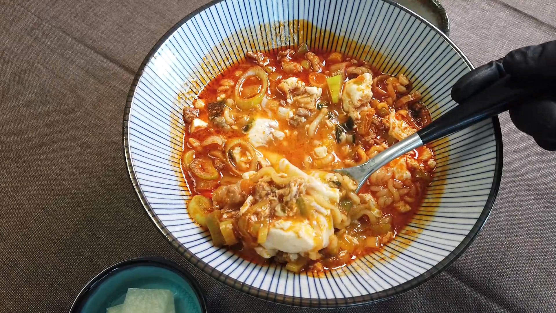 국물이 아주 기깔나는 얼큰 해장 라면 순두부라면이 완성되었습니다.